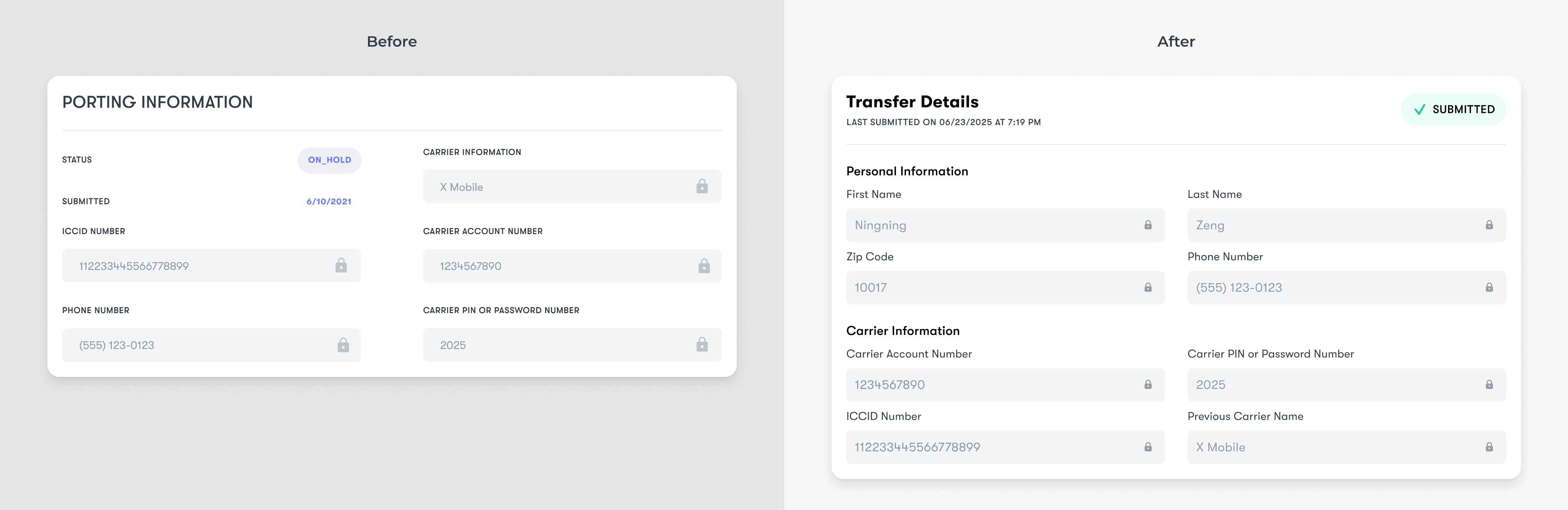 I also redesigned the Transfer Details section to improve readability and hierarchy, making it easier for users to review their information before resubmitting.