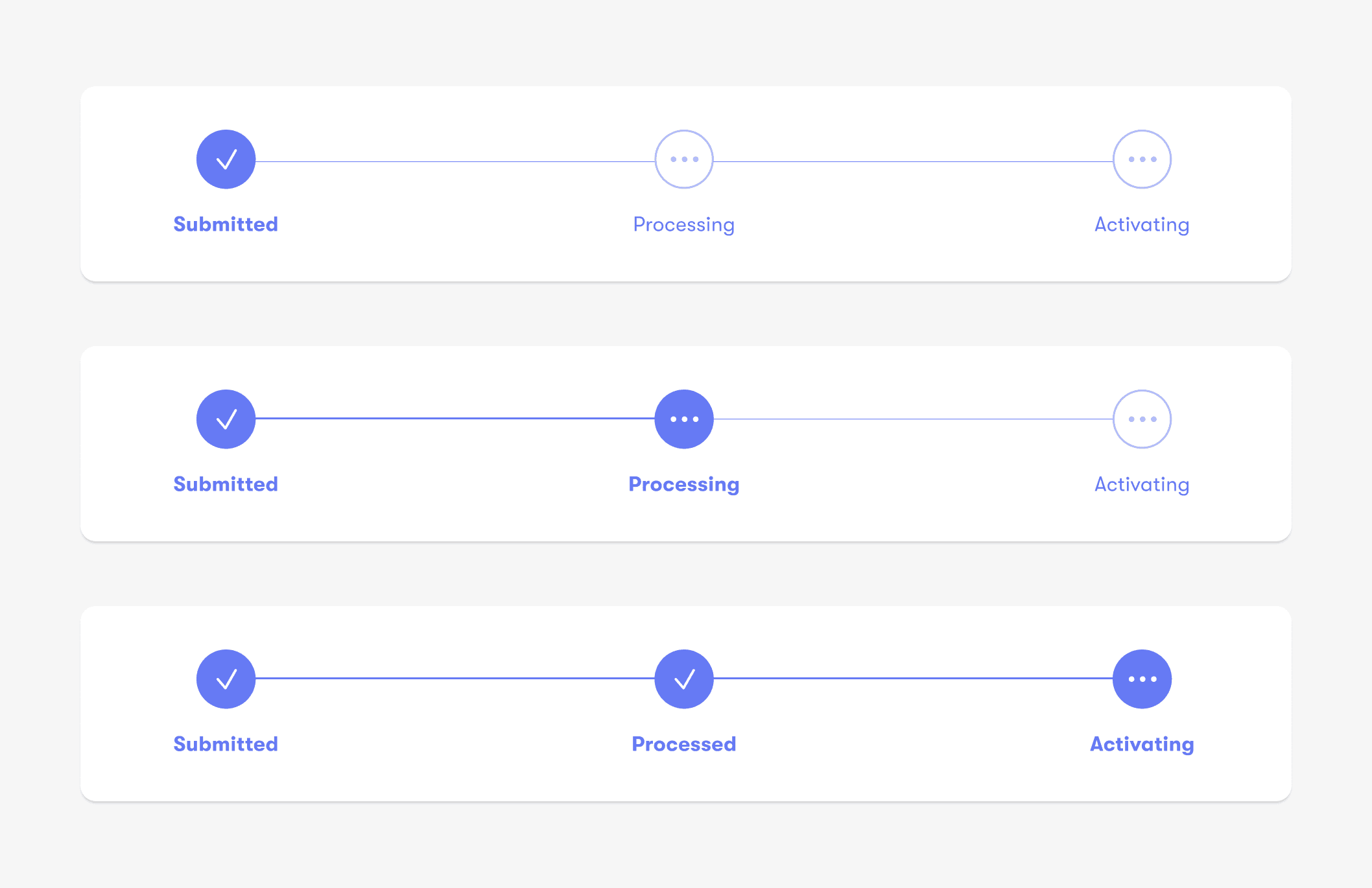 To make the waiting experience feel more predictable, I redesigned the status dashboard to clearly show what’s happening, with progress, expectations, and the right next step for each stage.